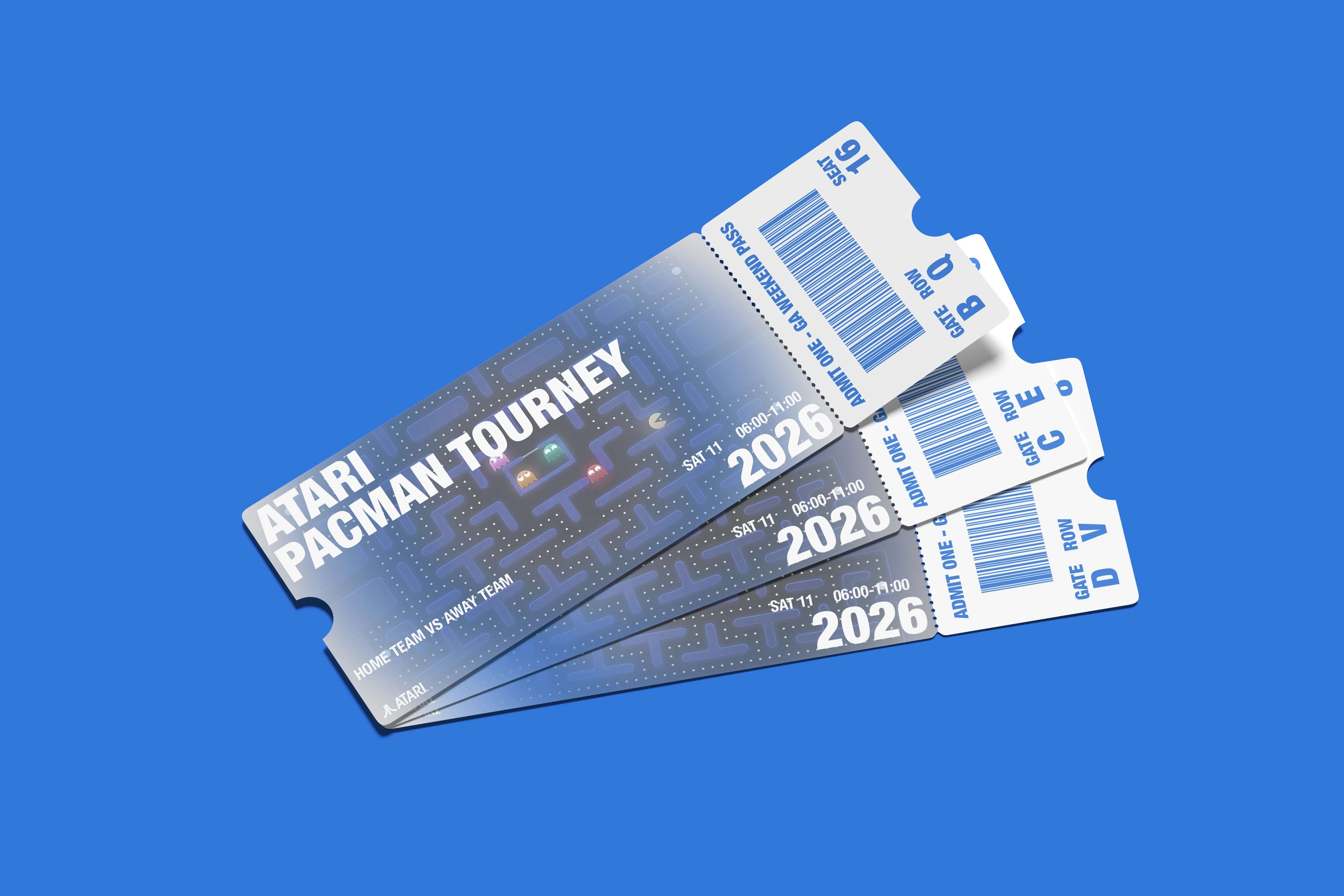 I developed a set of admission tickets inspired by Pac-Man maze layouts, using subtle pattern overlays to reference gameplay without overwhelming the layout. These tickets reinforce the event’s identity through layered environmental texture, arcade-inspired color contrast, clear typographic hierarchy, and collectible visual appeal. The goal was to create artifacts that function both as entry credentials and memorabilia.