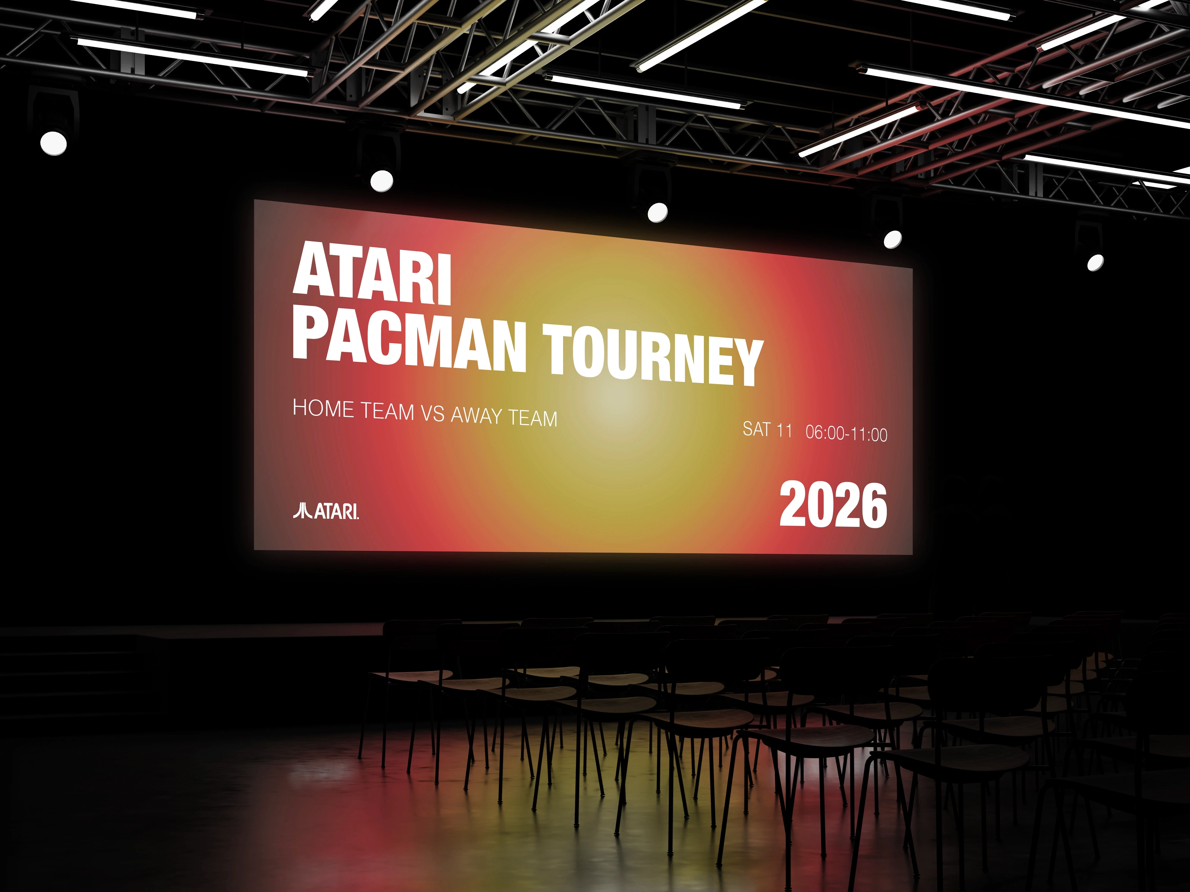 For this project, I developed a visual identity system for a fictional Atari Pac-Man Tournament, exploring how a legacy arcade brand could expand into a contemporary competitive gaming event format. The goal was to translate retro arcade culture into a modern tournament experience through a cohesive branding system that works across environments, merchandise, and live-event touchpoints. Concept I designed the Atari Pac-Man Tourney 2026 as a hybrid between classic arcade nostalgia, esports tournament branding, traditional sports event identity systems. The campaign combines bold typography, geometric framing elements inspired by the Atari logo, and high-contrast tournament graphics to create a visual language that feels both heritage-driven and contemporary. Event Identity System At the center of the project is a custom tournament crest inspired by Atari’s iconic logo geometry, arcade cabinet silhouettes, competitive sports league badges. This mark functions as the anchor for the full identity system and scales across, uniforms tickets, environmental displays, and promotional materials. The goal was to create a recognizable tournament emblem that could live beyond a single event and feel expandable into a recurring series. Tools Used Adobe Illustrator Adobe Photoshop Mockup compositing workflows Skills Demonstrated Event identity design Logo system development Sports branding Environmental display graphics Merchandise integration Typography for large-scale formats Experiential campaign thinking